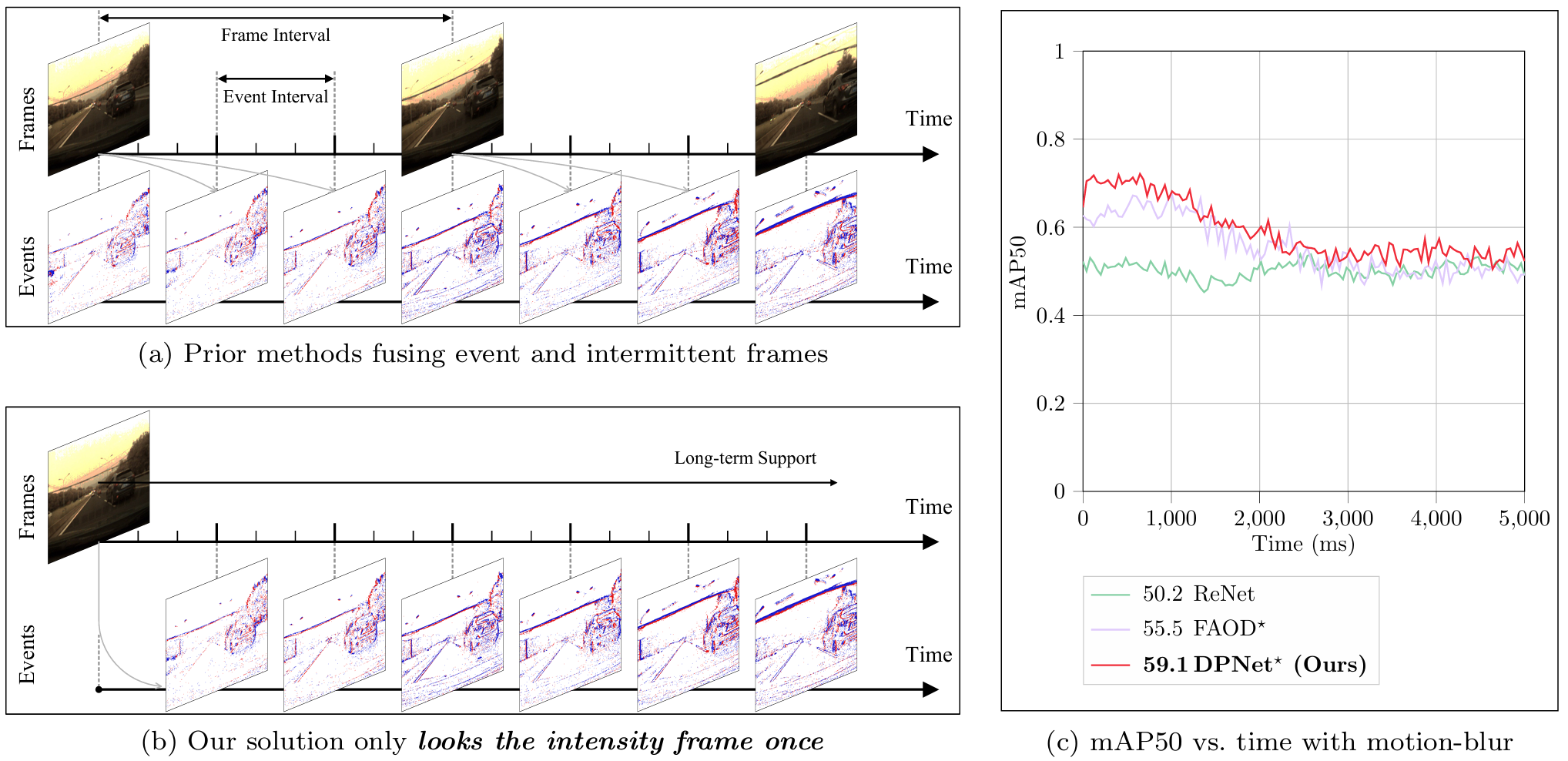 Cooperating intensity/RGB frames with event signals offers a practical and effective solution for high-speed object detection, while existing methods rely on frequent RGB frame updates, typically every 0.2 seconds, to preserve scene context. This leads to high computational costs, redundancy across frames, and latency issues, especially on edge devices. In this work, we propose the Delta Perception Network (DPNet), a novel learning-based detector that requires only a single RGB frame at the beginning of a sequence to detect high-speed objects over a 5-second duration, 25 times longer than prior methods. The key insight is that the initial frame can serve as a durable scene prior, while the continuous event stream supplies sufficient motion information to update this prior without needing further intensity frames. This design allows DPNet to track dynamic scene changes efficiently and accurately over extended periods. At the core of DPNet is a Delta Perception module that emphasizes temporal changes, and a Grid Sampling GRU that incrementally maintains and refines the scene representation. Extensive experiments show that DPNet outperforms state-of-the-art frame-based, event-based, and fusion-based detectors. Our results demonstrate that long-duration, high-speed object detection is not only feasible but also efficient using a single intensity/RGB frame and continuous event input, enabling real-time performance with reduced computational demands.